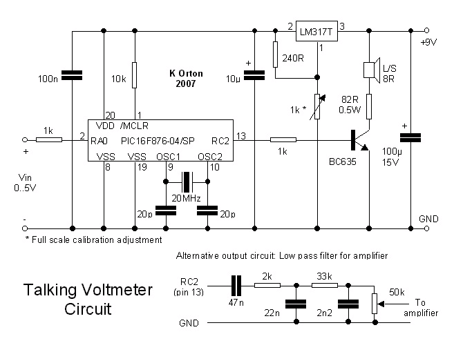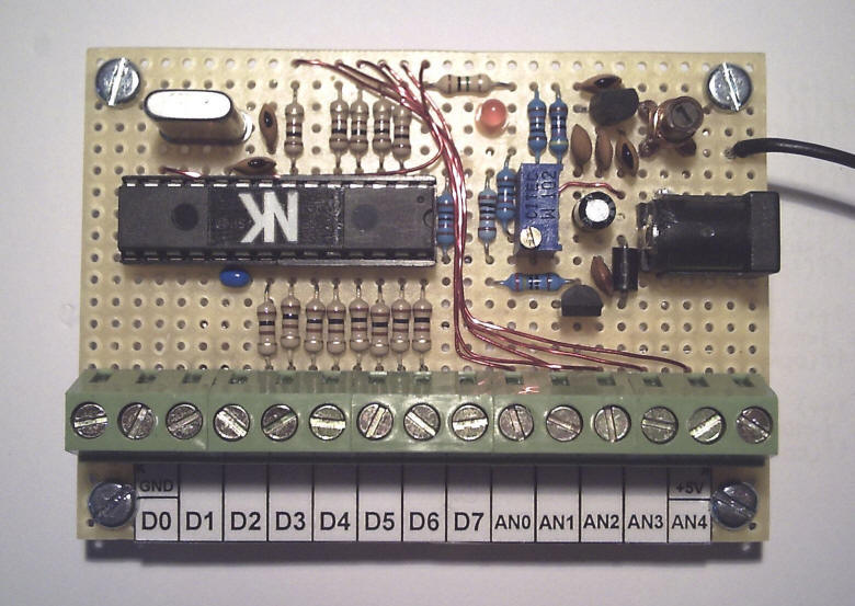 Analogue signals use the PIC supply as a reference. For this reason, an adjustable voltage regulator is used to permit precise control of the analogue reference. Be sure to adjust the preset resistor for around 5V supply BEFORE you insert PIC otherwise the PIC may be over-voltaged.