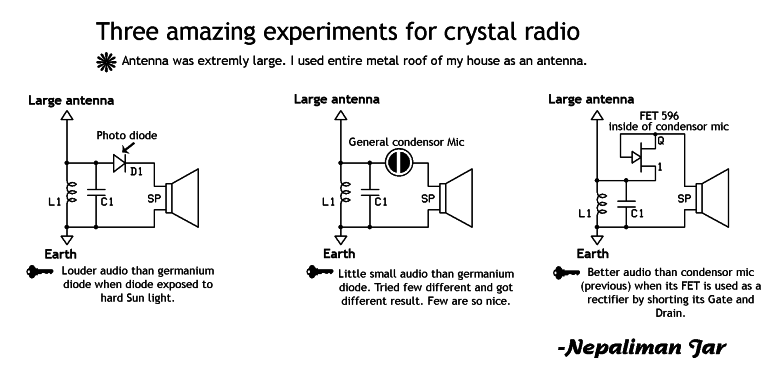 radio needs NO battery power. To make Crystal Radio we need special crystal or