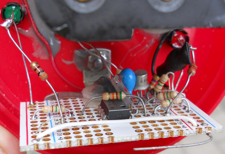 You will notice I didn't use the exact values in the schematic but they're close. I took these from my 2% drawer so they're a little "odd." That 51k is the 47k in the schematic . I used 9.1 megohms for the 10 meghoms and 300 ohms for the 270 ohms in the schematic. Ignore these variations; they're insignificant. Notice that I covered the neon lamp with heat shrink tubing to keep out the light. Use heat shrink for this since the adhesive on black tape might be too conductive.