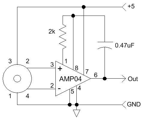 With the AMP04 version change the 2k to 1k to achieve a gain of 100, if desired. More gain will be needed back in the lab anyway.
