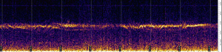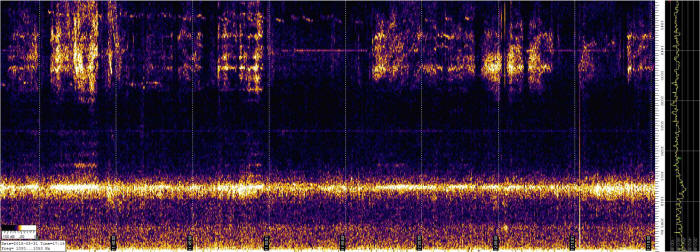 Here's another close-up image of the 13 Hz "resonance" captured late at night showing interesting structure that I bet is traffic crossing the long bridge: