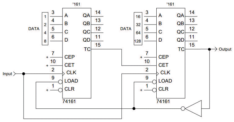 counter handles N values up to 16, two counters divide by N values up to 256,