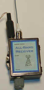A short, perhaps 6", antenna is a great general-purpose length for general listening but trimming the length for the a desired band will give better sensitivity. For the antenna connection, use an RCA or similar connector with the ground connected to the battery negative in case you want to try a loop antenna. Loop antennas (loose end connected back to ground) work especially well for single frequencies and a tuning capacitor may be added across the loop. This detector circuit will also work well as a crystal radio, even at higher short-wave frequencies with the addition of a simple tuned circuit. Add a 10 to 100uH choke in series with the antenna near the receiver to keep out the higher frequency signals when listening to AM stations and connect the diode to a fairly high impedance tap on the tuned circuit since the diode impedance is high in this circuit. The 100pF capacitor and 10k resistor are not needed as long as the tuned circuit provides a DC path to ground for the diode. (See Crystal Radio Circuits for tuned circuit ideas.)