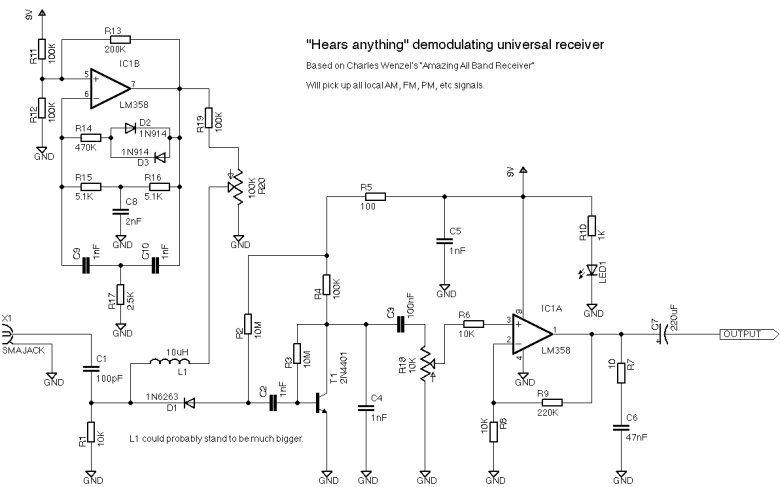 The Amazing All-Band Receiver is basically a diode detector followed by a high-gain