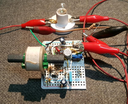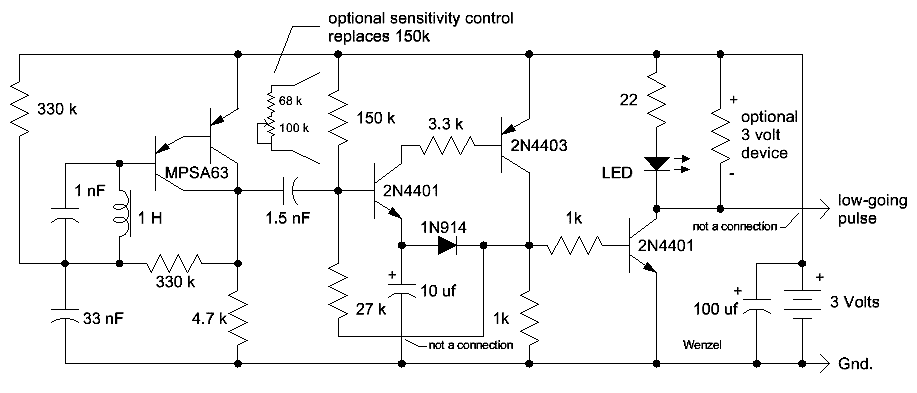 (Also see magnetic antenna version , op-amp version and Compound Transistor version)