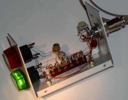 Power is supplied by an ordinary 12 VAC molded transformer (not DC!) capable of supplying enough current to light the lamps. The SCRs should be sensitive-gate types also with a current rating higher than the lamps require. The prototype uses metal can SCRs but the ordinary 2N5064 or similar will work fine. The prototype's lamps consume 60 mA each (two per holder).
