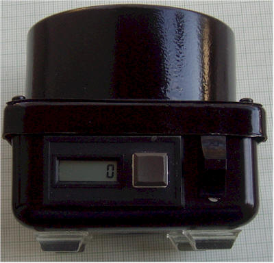 The counter is a commercial module (CUB3R000) with its own internal battery. (I got a couple of these in a surplus deal, but new ones are probably too expensive.) I removed the battery and cut the case down: