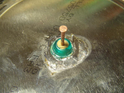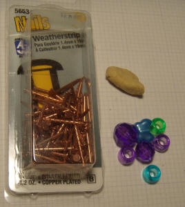 nail. A white plastic bead was used to cover the end of the copper nail where