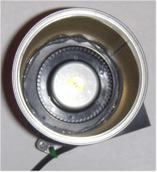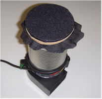 Turn on the fan with the filter facing up and let it run for an hour or two, preferably in a basement room or a room with little air flow and sheetrock or concrete walls, foundation, or countertops. An attic might be a poor choice! Connect the ion chamber to a DVM and turn on the meter. Make an initial meter reading and record it on paper. The reading should be just a few tens of millivolts. Now, unplug the fan and tip the collector over to the horizontal position. Depending on the location of your can on the fan motor, you may wish to add some rubber feet to keep it steady when in a horizontal position. Move the end with the collection cloth as close to the end of the ion chamber as possible without pressing on the foil with significant force. If all is working properly, the meter reading should climb for several seconds and settle out at a significantly higher reading, indicating that radioactive material has collected on the collection cloth. Well ventilated homes may have few radon daughters in the air and it may be necessary to repeat the test in an older building with lots of masonry, or in a basement. Try remote areas of the building where there is little airflow and rock-based building materials like exposed cement or sheetrock. Basements in some parts of the country may require the meter be switched to a less sensitive range!