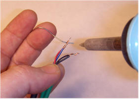 The can may be offset from center a little, as long as the intake is completely covered. After the epoxy has had plenty of time to cure, cut any connector off the end of the fan's cable and remove some insulation from the red and black wire: