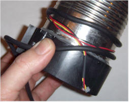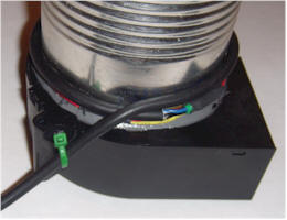 To strain relieve the wires, wrap the cable around the can and secure with duct tape or cable tie: