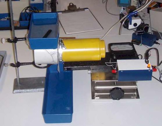 The desired isotopes will accumulate on the surface of the filter paper and their radioactive decay is easily monitored by placing a detector close to the surface. The detector used in these experiments is a home-made air-filled ion chamber.