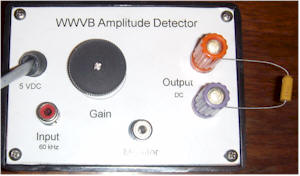 The live plot at the top of this page is being made by the following receiver. The antenna/preamplifier at the top of this page is tuned to 60 kHz with a .03 uF capacitor for driving this experimental WWVB receiver and the broadband version should also work well.