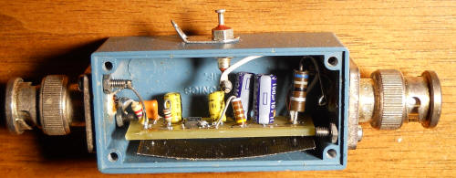 This box also helped to keep AM radio stations out of the amplifier. It should have a bleed resistor, too, perhaps a couple of 22 meghoms in series from antenna to ground. It's best to disconnect the antenna when not in use.
