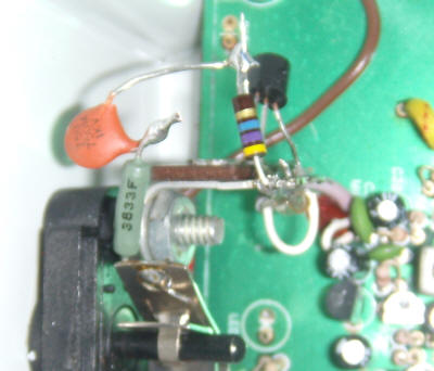 Also notice that this design "violates" the inversion rule where the output should be an inverted version of the input. The metal case helps a lot but it will squeal if a poorly-shielded audio cable is held near the antenna (such as a crystal earphone cable). Good headphones usually have well-shielded cables and seem to work fine. When using this device as a portable unit the hand touching the case provides an important "ground".