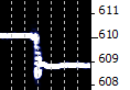 The little plot on the right shows the results of a 1 mV step on the input. It jumps around at the transition because I'm trying to set it by hand with a ten-turn pot. I think you can see the wires in the pot on the plot! My voltmeter was reading 610 mV before I adjusted it down to 609 mV. That's some nice resolution! The plot is quite impressive when it fills the screen and the accuracy and stability of the V/F shines.