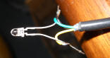 I used "dead bug" construction making sure to keep everything low so the case would snap back together. Before removing the 9-pin serial connector from the adapter I plugged in a PicAXE programming cable with the stereo phono plug on the end and used an ohmmeter to discover which two serial wires inside the adapter I needed, making a note of which color did what (serial in and out). I also found a place to connect a wire to the +5 VDC from the USB cable at the other end. There was a handy via in the board for that yellow 0.1 uF capacitor. The schematic is quite simple:
