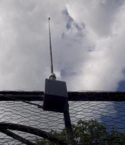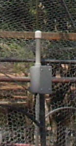 Since monitoring SIDs tends to take a lot of time, it's desirable to have dedicated equipment, including the antenna. For this experiment, a dedicated active antenna is mounted above a garden fence, held on by two screws on the right and a cable tie on the left. A ground wire runs down to the garden's water pipe. That cable tie around the water pipe should be replace by a proper clamp at some point. The electronics is housed in an ordinary PVC electrical junction box with the antenna sticking out a hole in the top of a length of conduit with a cap. I drilled the hole in the cap such that the antenna rod was a snug fit, then I filled the tube with caulking foam from the inside to keep water out.