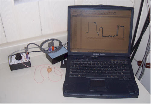 Note: Right now, I'm using a Dataq DI0148U and an Excel Spreadsheet, instead of the Keyboard Wedgie. Both work great, but the spreadsheet is a little more hands-off for 24/7 plotting. See Data Loggers. I use the Meter/Data Acquisition Amplifier to buffer and amplify the signal.