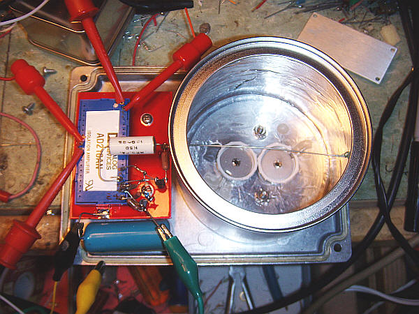 The new ionization chamber has two smoke detector elements inside. The aluminum lid to the top, right was used to shield the elements to check the zero.